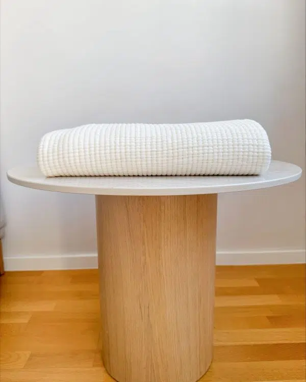 Dekica od šesteroslojnog muslina s punjenjem od prerađenih bambusovih vlakana pruža savršenu ravnotežu topline i prozračnosti. Zahvaljujući većim dimenzijama (120 × 110 cm), prati vaše dijete od prvih dana pa sve do kasnije dobi, nudeći mu sigurnost i nježnost u svakom trenutku.