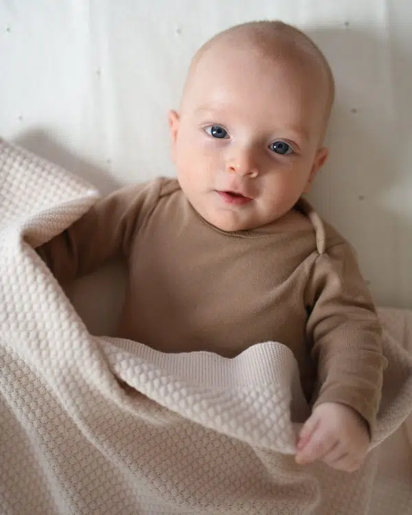 Ovo su dekice koje traju godinama i s kojima ćete stvarati najljepše uspomene. Izrađene od 100% končanog pamuka savršene su za bebinu osjetljivu kožu. Dolaze u nježnim, prirodnim tonovim a izrađene su posebnom tehnikom pletenja koja im daje dozu luksuza, ali i svakodnevnu praktičnost. Napravljene od prozračnog, kvalitetnog pamuka, savršene su za korištenje tijekom cijele godine – ljeti lagane i ugodne, zimi tople i umirujuće. Dekicu je moguće personalizirati pa je idealna kao poklon koji ostaje kao uspomena.